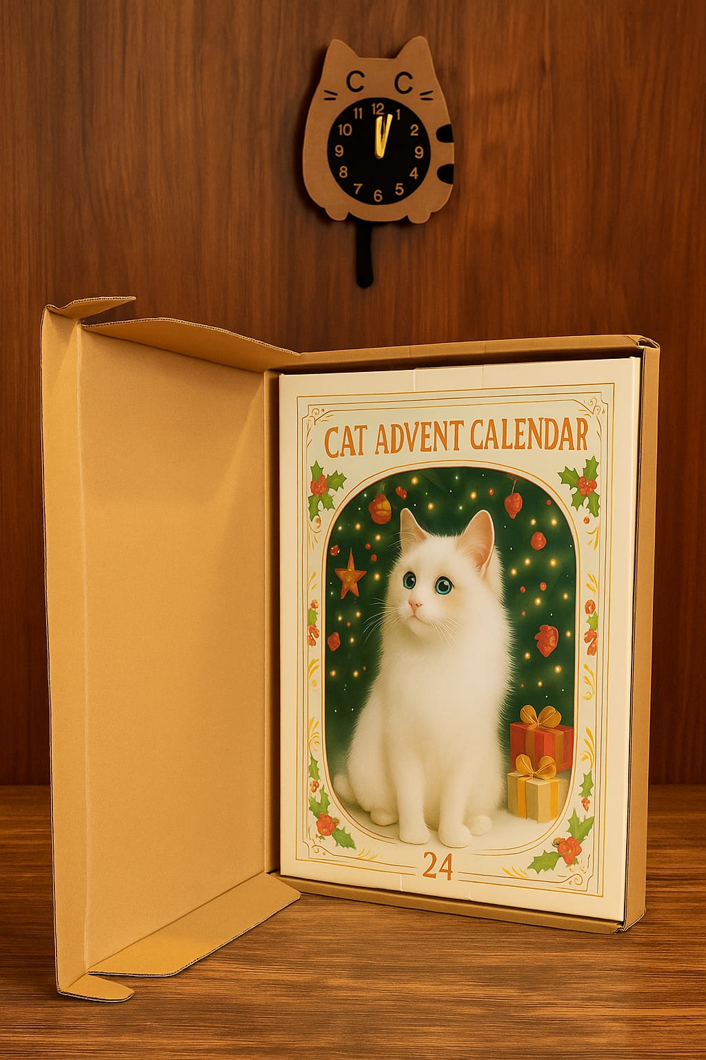 Este calendario está diseñado para los amantes de los gatos que buscan un toque especial para sus celebraciones de Navidad. Detrás de cada una de las 24 puertas, encontrarás una preciosa figurita de gatito, cuidadosamente diseñada con temática navideña. Estos pequeños y entrañables adornos son perfectos para colgar en tu árbol de Navidad o para decorar cualquier rincón de tu hogar.