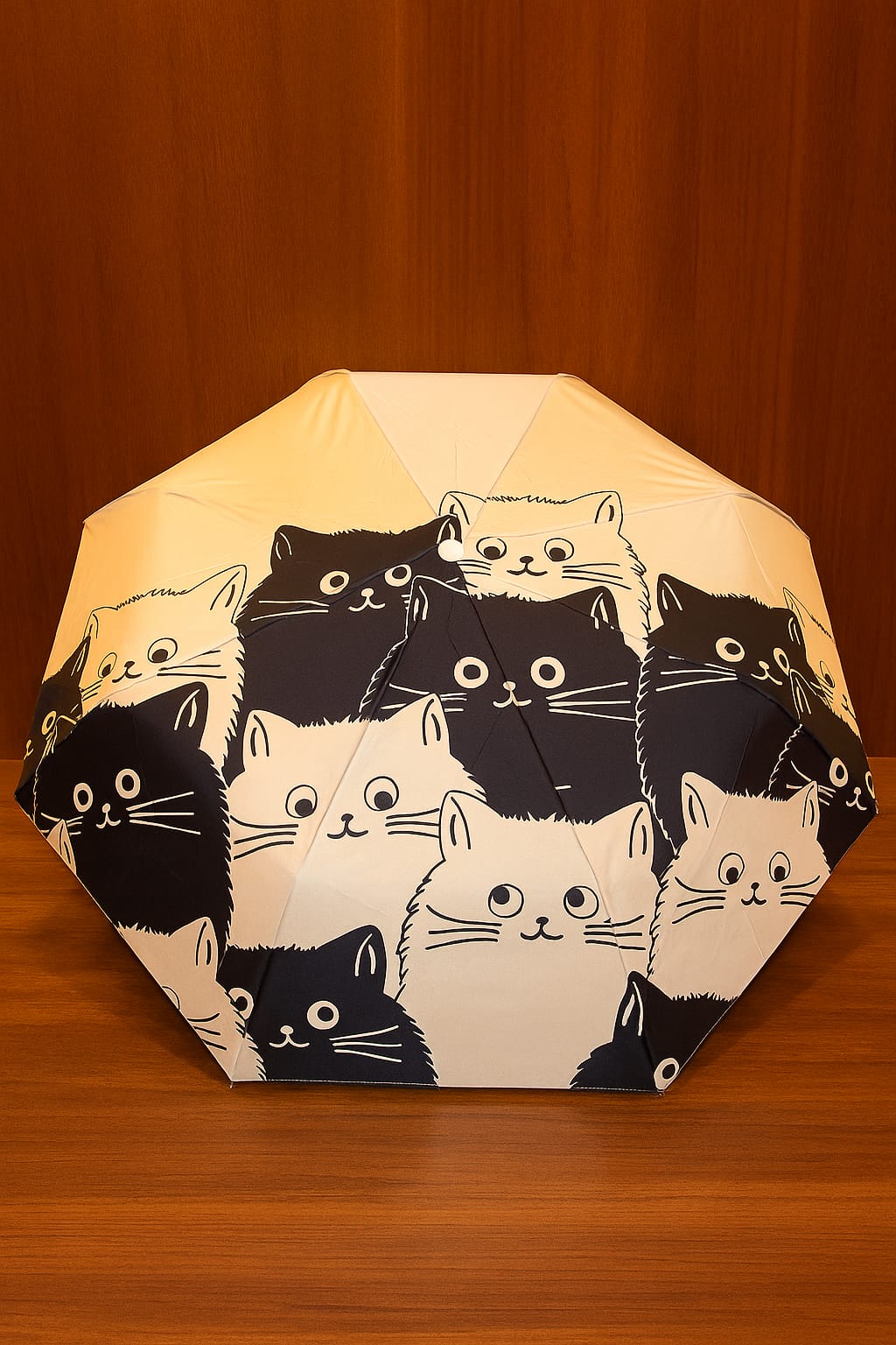 Este paraguas será el accesorio imprescindible para los amantes de los felinos. Su mecanismo automático te salva de apuros, mientras que su fuerte estructura y protección UV lo hacen tan fiable como un gato cazando un ratón. ¡Llévalo contigo, es compacto, ligero y está lleno de personalidad!